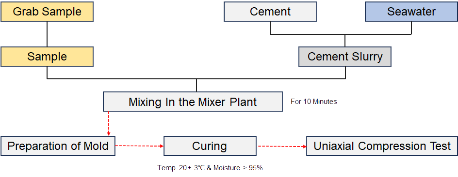 Prior to DCM Construction, the test should be done to determine cement and water ratio of mixture considering test result.