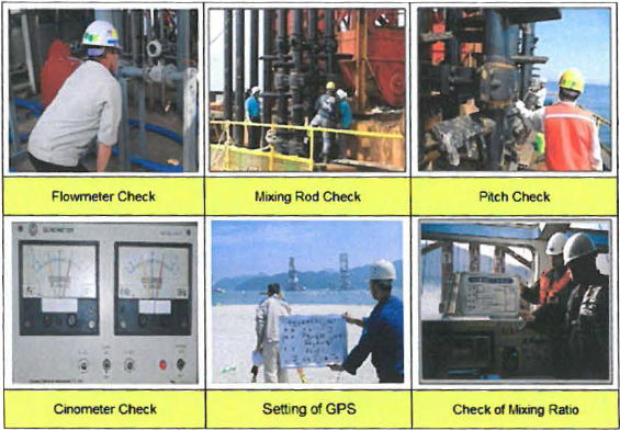 The control of barge position and design location of DCM clusters will utilize the GPS system. A Barge GPS receiver and telemeter will be installed for positioning the barge. Reference station will also be set up at the nearby area for referencing and calibrating all geographical data In accordance with Grid System. The geographical data will be transferred to computing system for real time monitoring of the position of the clusters during installation works.